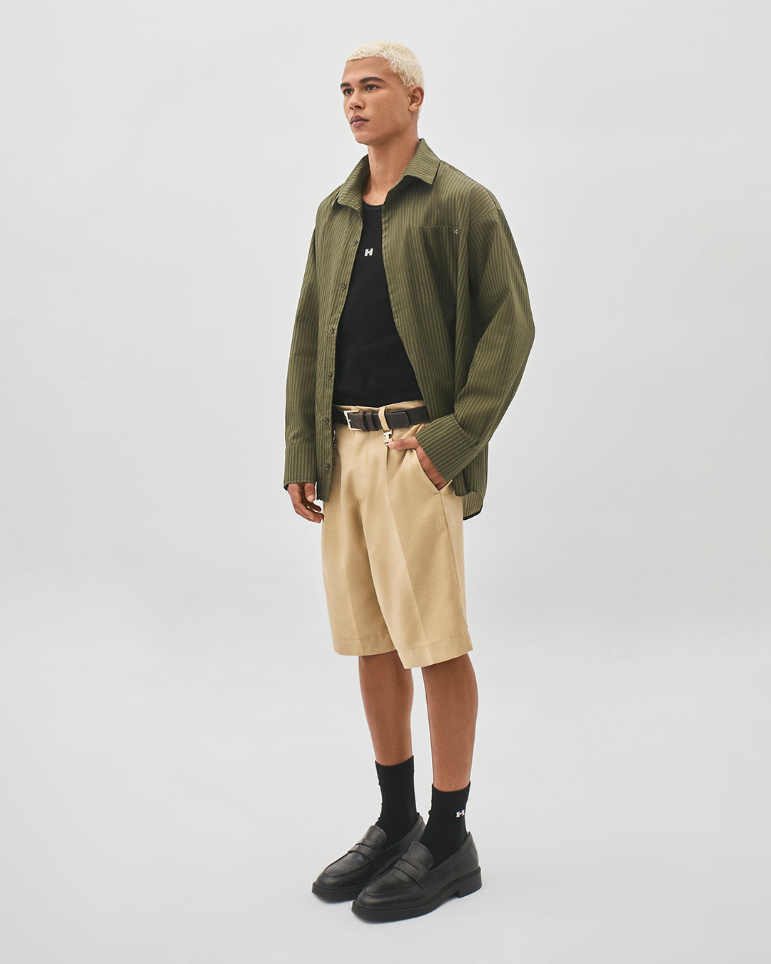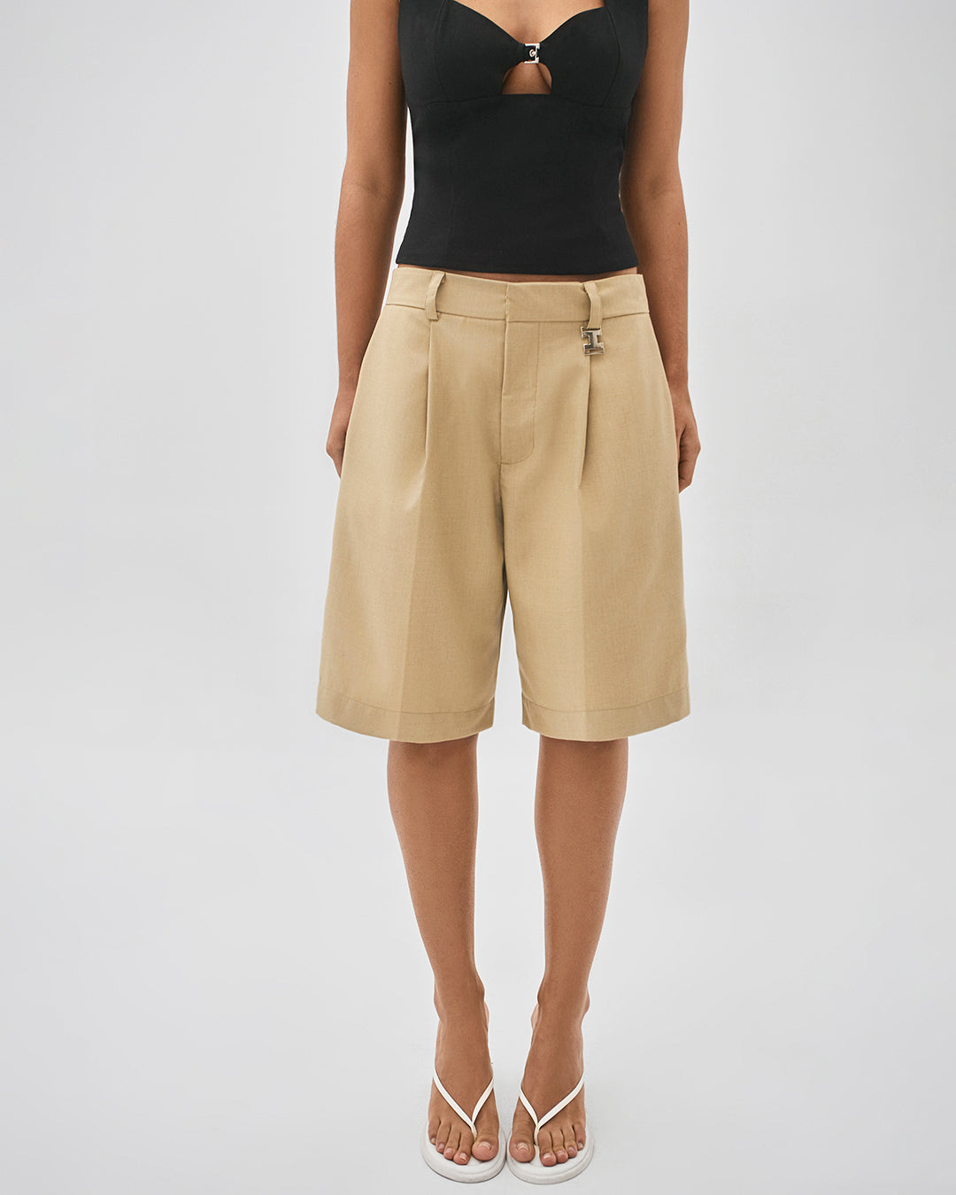 Bermuda com pregas de alfaiataria bege