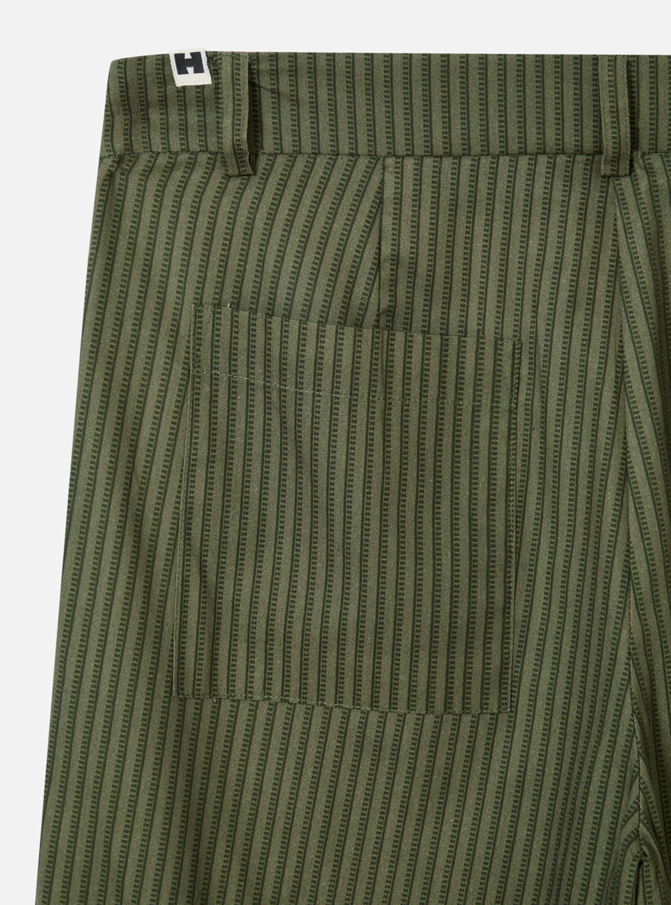 A Calça Unissex 100% algodão recebe acabamento mercerizado para brilho sutil, toque mais suave e maior resistência, traduzindo qualidade material com superfície lisa e caimento moderno. A modelagem reta entrega conforto e alinhamento visual, enquanto o cós reto com elástico na parte traseira garante ajuste prático sem perder a estrutura. Os bolsos laterais profundos e os bolsos traseiros funcionais elevam a usabilidade no dia a dia, mantendo a estética clean com costuras tonais. A estampa exclusiva forma listras a partir das letras H da logo, adicionando identidade gráfica e estilo autoral à peça. Um essencial contemporâneo que transita do urbano ao casual sofisticado com versatilidade.