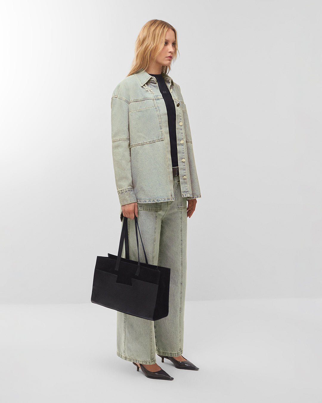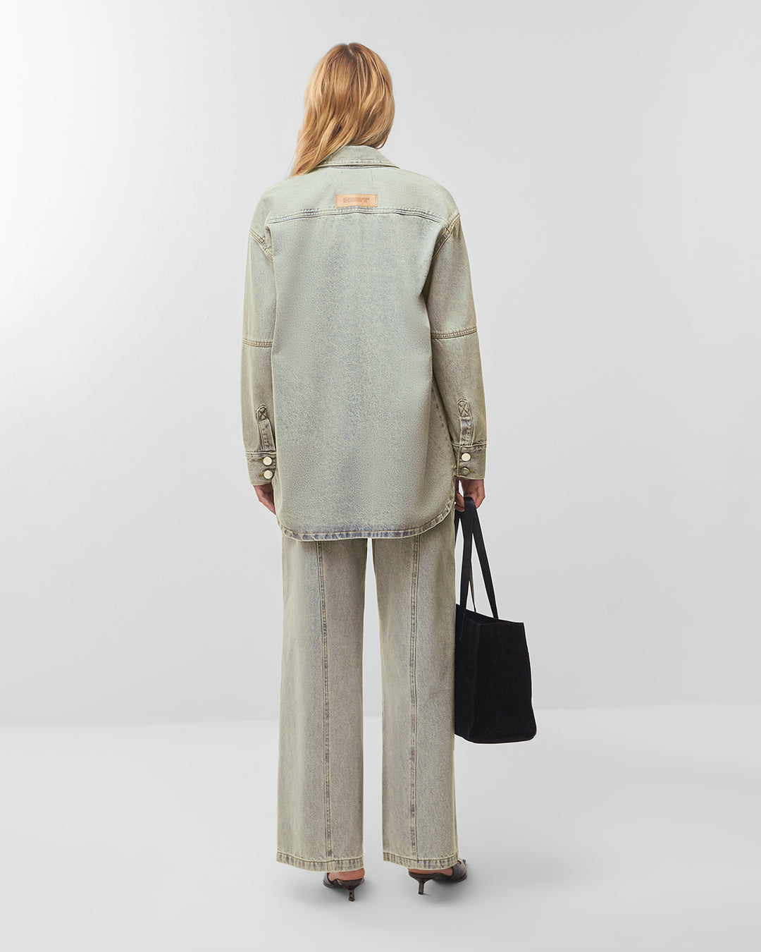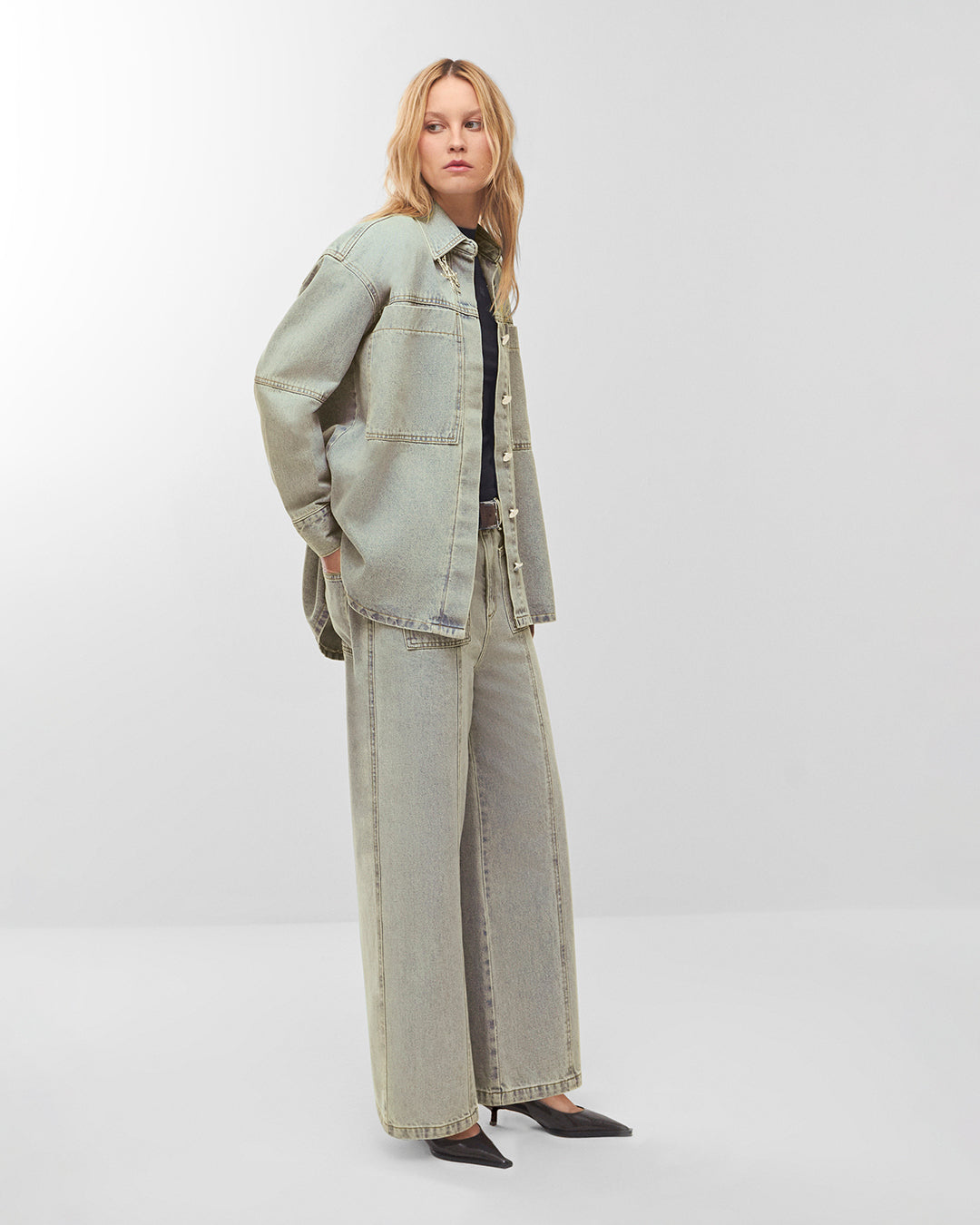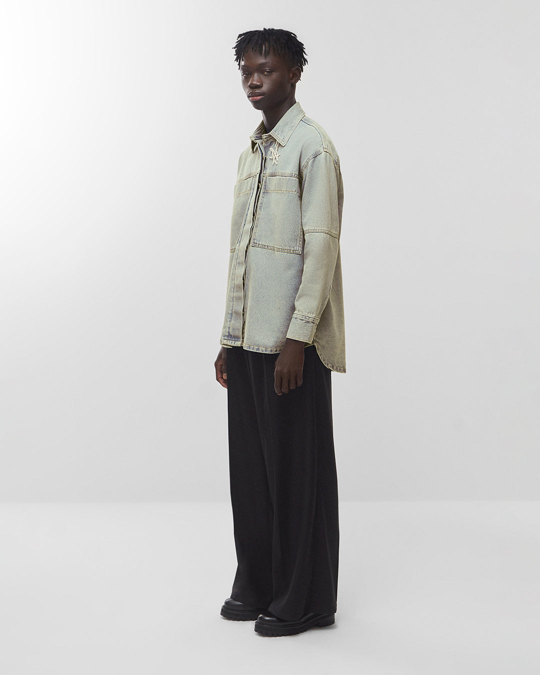 Camisa jeans oversized manga longa lavagem dirty