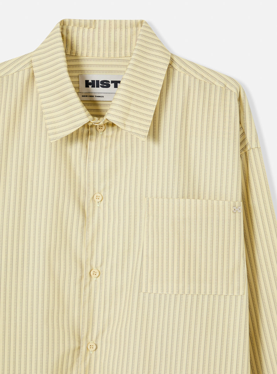 Confeccionada em tafetá 100% algodão de alta qualidade, esta peça entrega conforto, durabilidade e superfície lisa com brilho sutil graças ao acabamento mercerizado. A estampa exclusiva é formada por listras de letras H interligadas da logo, criando um visual moderno e autoral que reforça a identidade da marca. A modelagem Loose Fit oferece caimento amplo e confortável, garantindo liberdade de movimento sem abrir mão da estrutura. O acabamento Carbon Brush confere toque macio e aparência sofisticada, elevando a versatilidade para diversas ocasiões. Detalhes de alfaiataria como punho duplo com costura francesa garantem acabamento interno limpo e resistente, enquanto o aviamento em prata no formato da logo aplicado ao bolso lateral arremata o design premium com discrição.