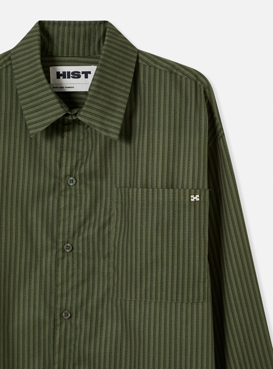 Confeccionada em tafetá 100% algodão de alta qualidade, esta peça entrega conforto, durabilidade e superfície lisa com brilho sutil graças ao acabamento mercerizado. A estampa exclusiva é formada por listras de letras H interligadas da logo, criando um visual moderno e autoral que reforça a identidade da marca. A modelagem Loose Fit oferece caimento amplo e confortável, garantindo liberdade de movimento sem abrir mão da estrutura. O acabamento Carbon Brush confere toque macio e aparência sofisticada, elevando a versatilidade para diversas ocasiões. Detalhes de alfaiataria como punho duplo com costura francesa garantem acabamento interno limpo e resistente, enquanto o aviamento em prata no formato da logo aplicado ao bolso lateral arremata o design premium com discrição.